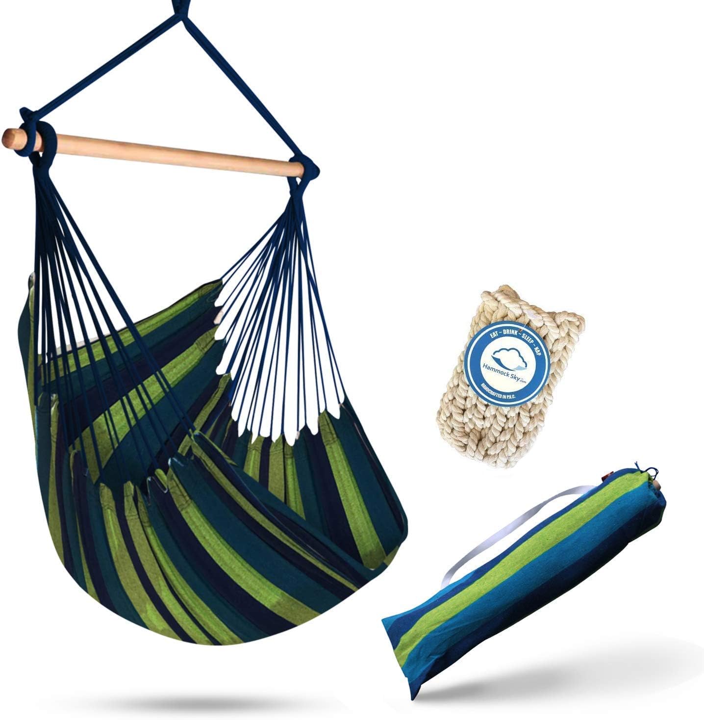 Amazon Com Hammock Sky Large Brazilian Hammock Chair Blue Green With Portable Drink Holder 2 Pack Garden Outdoor