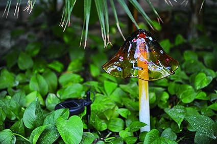 Amazon Com Coloriscape Solar Mushroom Yard Art Amber Garden Stakes Garden Outdoor